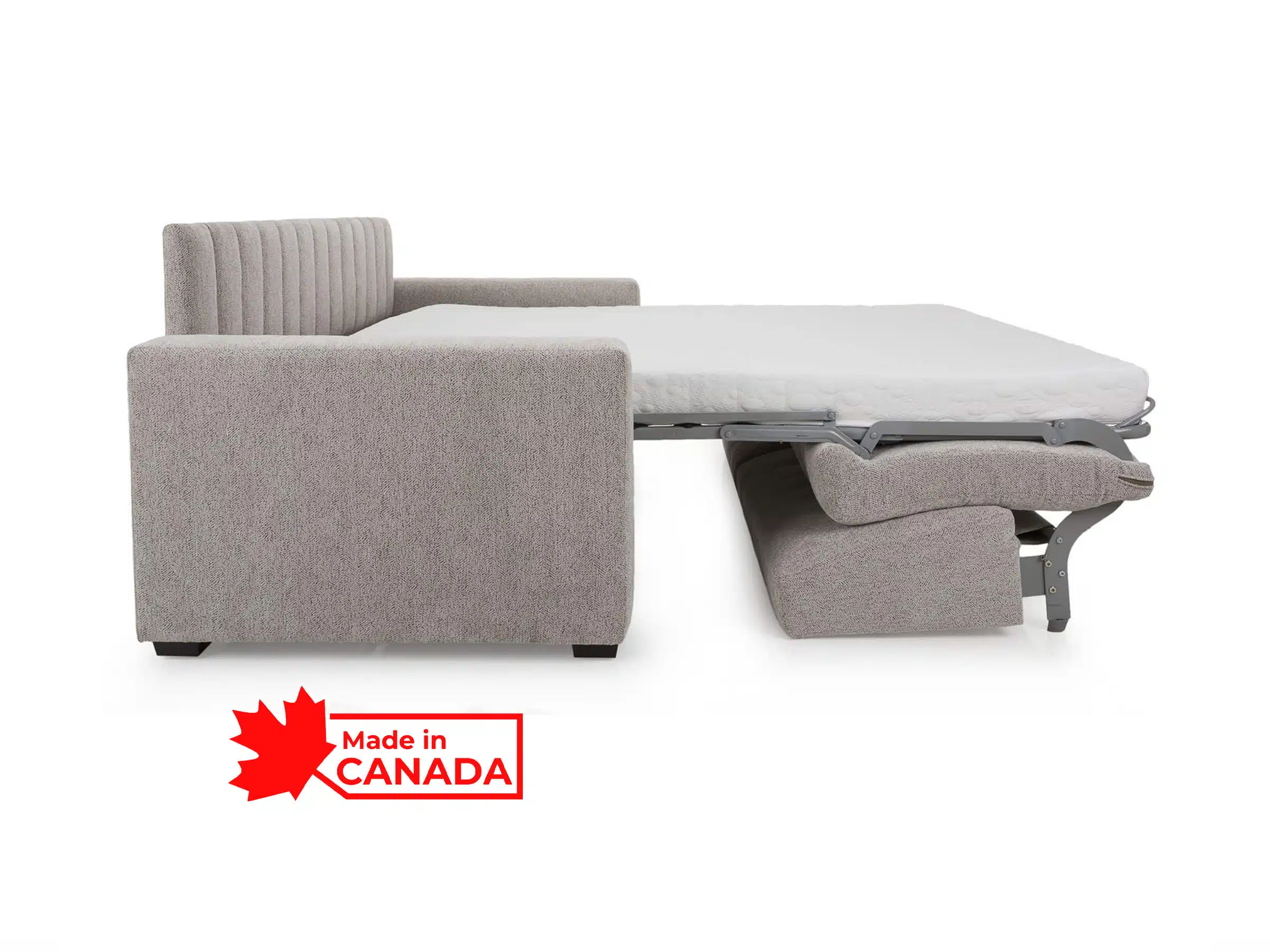 The Esther sofa easily transforms into a sleeper to have overnight guests. Super easy to open and go, no seat cushions to store. Featuring a premium memory gel foam mattress plus 2 decorative toss pillows. Available with 2 different arm options (3.5-6"). Available in a huge selection of high quality leathers and durable fabrics. Proudly made in Canada.